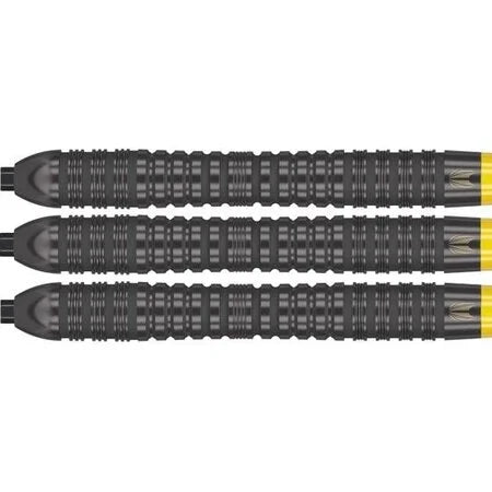 Gyda gorchudd titaniwm du syfrdanol am haen ychwanegol o wydnwch ac estheteg well, mae'r gafael rhigolau rheiddiol wedi'u chwythu â thywod yn caniatáu mwy o reolaeth gan roi'r hyder i chi daflu gyda chywirdeb manwl gywir. Wedi'u peiriannu ar gyfer manwl gywirdeb, mae'r casgenni twngsten 90% yn cael eu hategu gan y siafftiau Pro Grip poblogaidd a hediadau rhif 6 Bolide Void, ac wedi'u gorffen gyda Phwyntiau Swistir du patent 26mm Target ar gyfer dart cwbl gyfnewidiadwy.