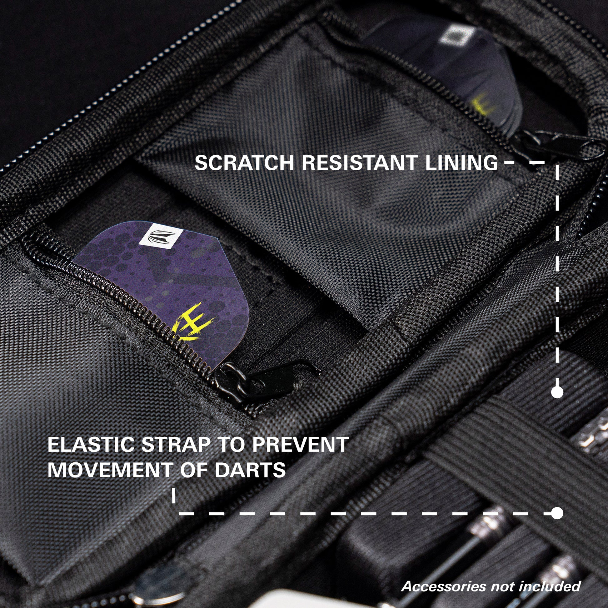 Built with a strong, durable hard shell, the Takoma ensures your darts remain secure wherever you go. The scratch-resistant interior holds 3 fully assembled darts in place, while dedicated zip compartments offer room for spare flights, shafts, Swiss Points, or your Swiss Point tool — combining performance, practicality, and signature Littler style in one premium case.
