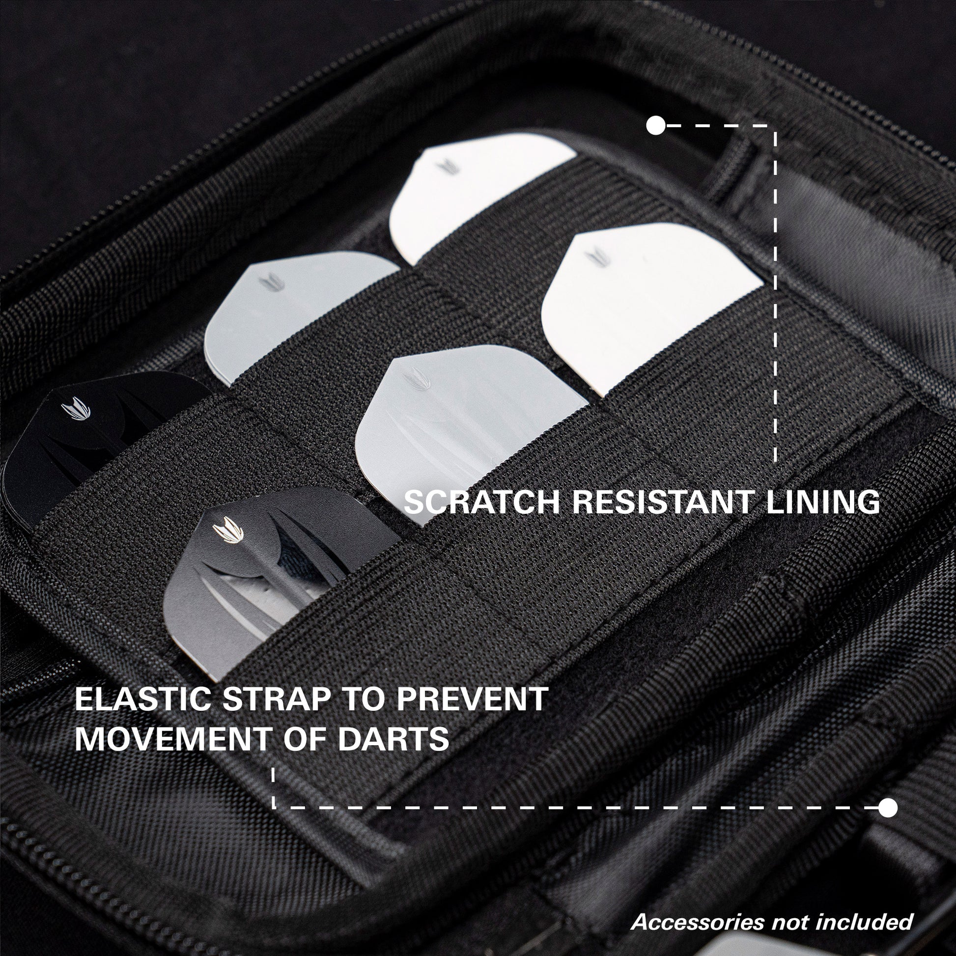 Constructed with a durable hard shell, the XL Takoma keeps your darts safe and protected. The scratch-resistant interior lining secures 6 fully assembled darts, while its larger design offers ample space for flights, shafts, Swiss Points, and your Swiss Point tool — combining performance, personality, and premium storage.