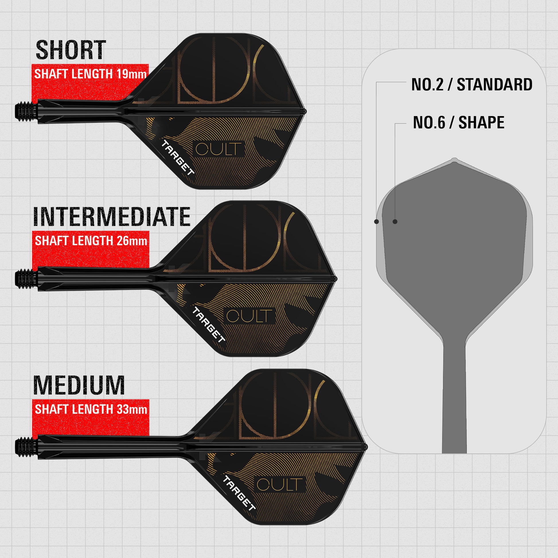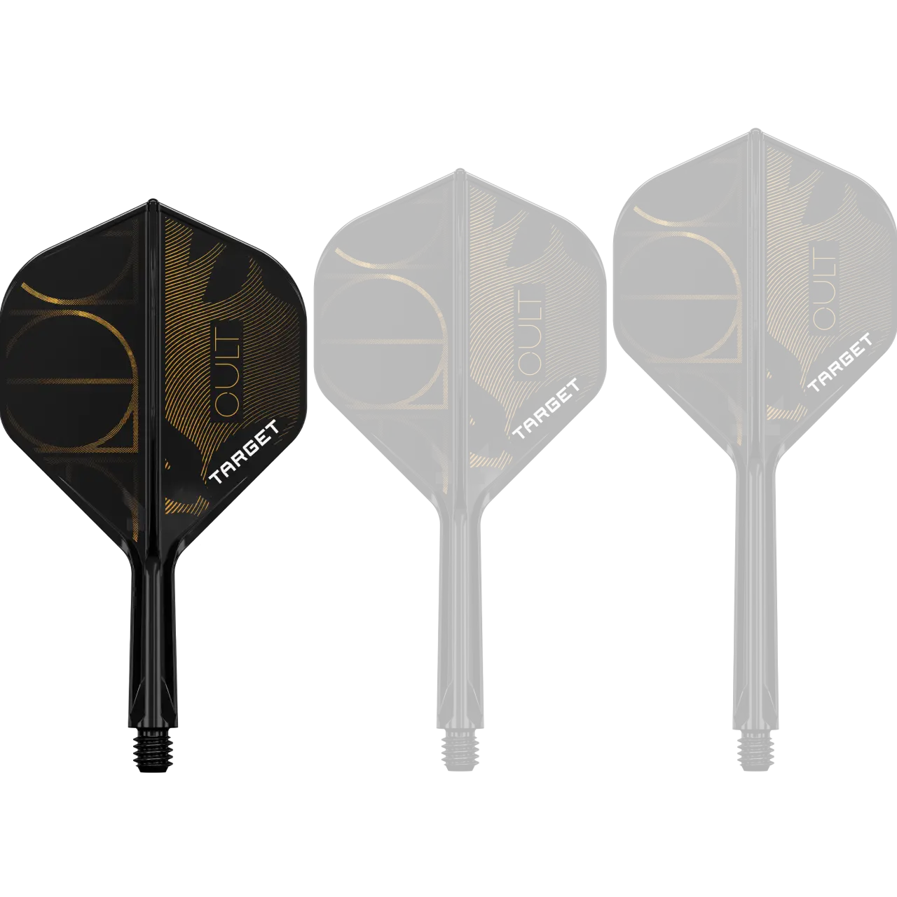 The Cult edition K-Flex integrated dart flights and shafts are designed as the perfect complement to the Cult dart series. Finished in sleek black with gold detailing, the featuring the bold, elegant Cult logo and abstract linework inspired by the dart range design. Built with advanced injection moulding, this all-in-one flight and shaft system is engineered for maximum durability, flexibility, and impact resistance. The specially designed shaft section moves on impact to minimize bounce-outs, while the integrated construction prevents flight dropouts—ensuring smooth, uninterrupted gameplay. Designed to reduce deflections and maintain tight groupings, K Flex delivers performance you can count on. Featuring a fixed 90-degree flight angle for perfect aerodynamics and a universal 2BA thread, the system delivers stable flight paths and seamless compatibility with all standard 2BA dart barrels. |