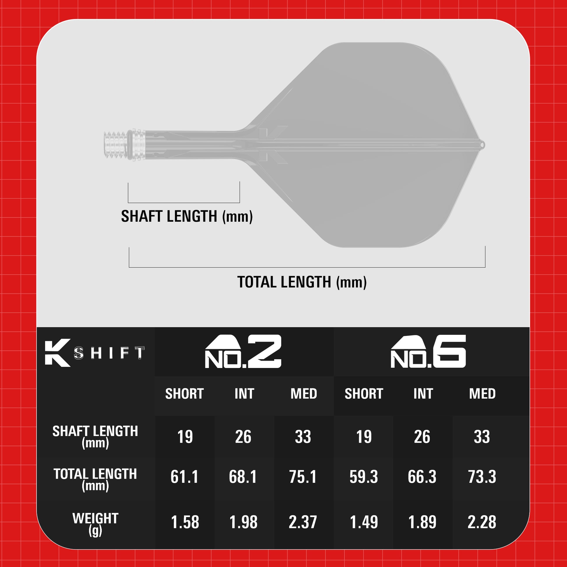 Available in Short (19mm), Intermediate (26mm), and Medium (33mm) lengths, and offered in No.2 and No.6 flight shapes, K-Shift provides players with maximum customisation to fine-tune balance, trajectory, and release. Designed for durability, adaptability, and high-level performance, K-Shift represents the next step in integrated dart system technology.