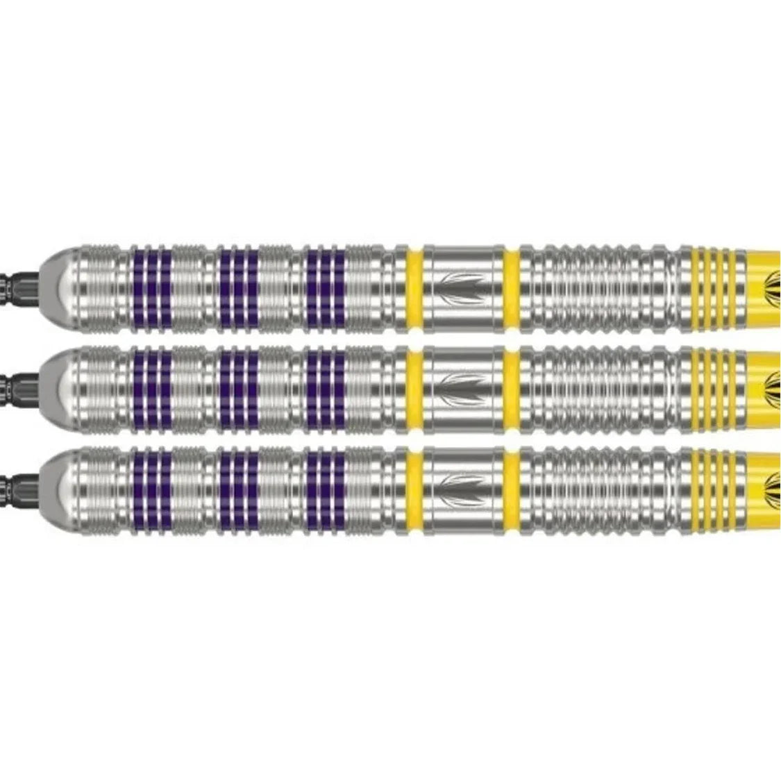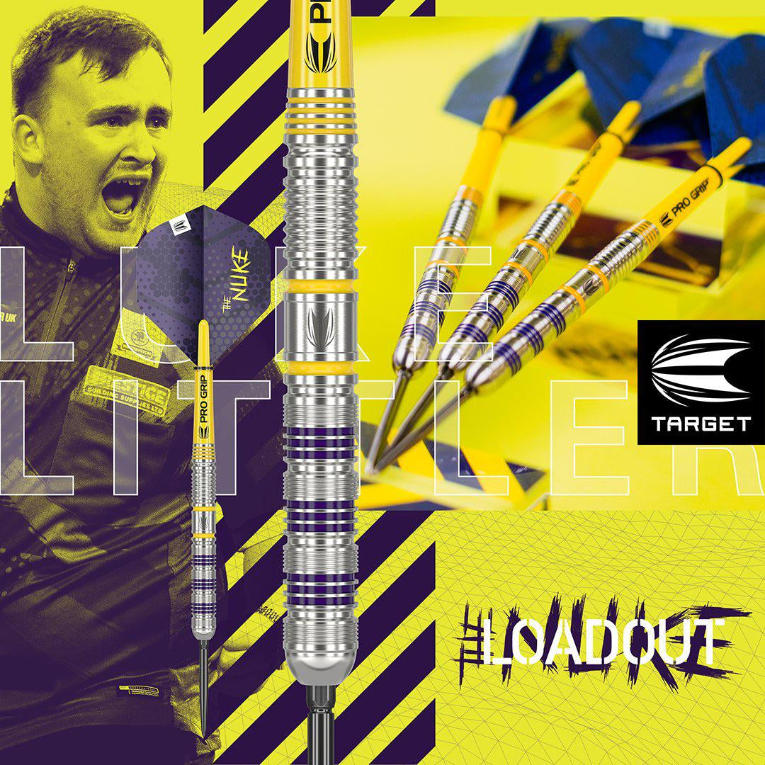 Introducing the Luke Littler Loadout Steel Tip Darts, a collaborative design with the 2024 PDC World Championship finalist. The dart set includes a 90% Tungsten straight barrel 52mm in length, featuring radial grooves for enhanced finger grip. Throughout the sleek design, you'll find small pops within the grooves of Nuke’s signature purple and yellow colours.